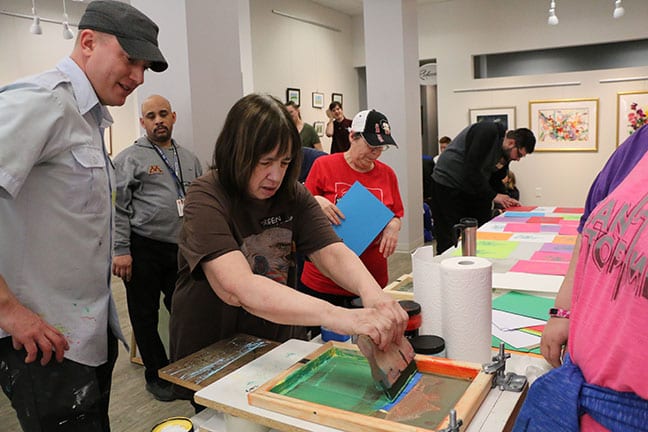 On a visit to MSS’ Eagan location, Winna Bernard, an artist, social worker, and President of The Show Nonprofit, was inspired to create a unique art space after seeing a beautiful piece of pottery. The piece was created by an artist who used a paint brush attached to a headband to apply the glaze and took six months to finish. As a social worker for over 20 years, she was tired of seeing beautiful pieces of art work created by artists with disabilities not being represented in art galleries in the Twin Cities. Winna invited the team from MSS, including MSS’ VP of Programs Michelle Dickerson, to lunch where they started piecing their vision together. Dickerson, who founded the MSS Art Program in 1999, and had always dreamed of a gallery where artists with disabilities could show their work in a professional setting.